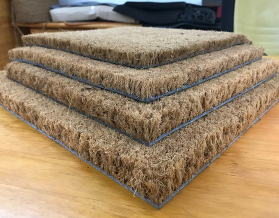 PVC Tufted (vinyl Backed) Coir Mats and matting rolls are made by tufting natural coir fibre in to thin layer of PVC. These door mats offers best scrub results and have low fibre shredding properties. Can be easily cut to any size/shape